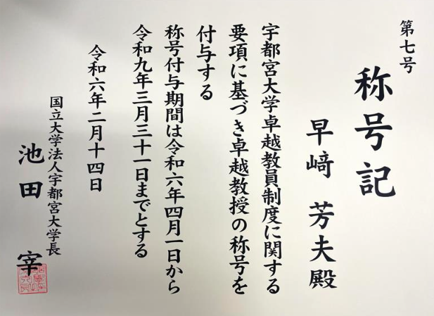 早崎教授と山本教授が,卓越教員称号を付与されました.おめでとうございます.